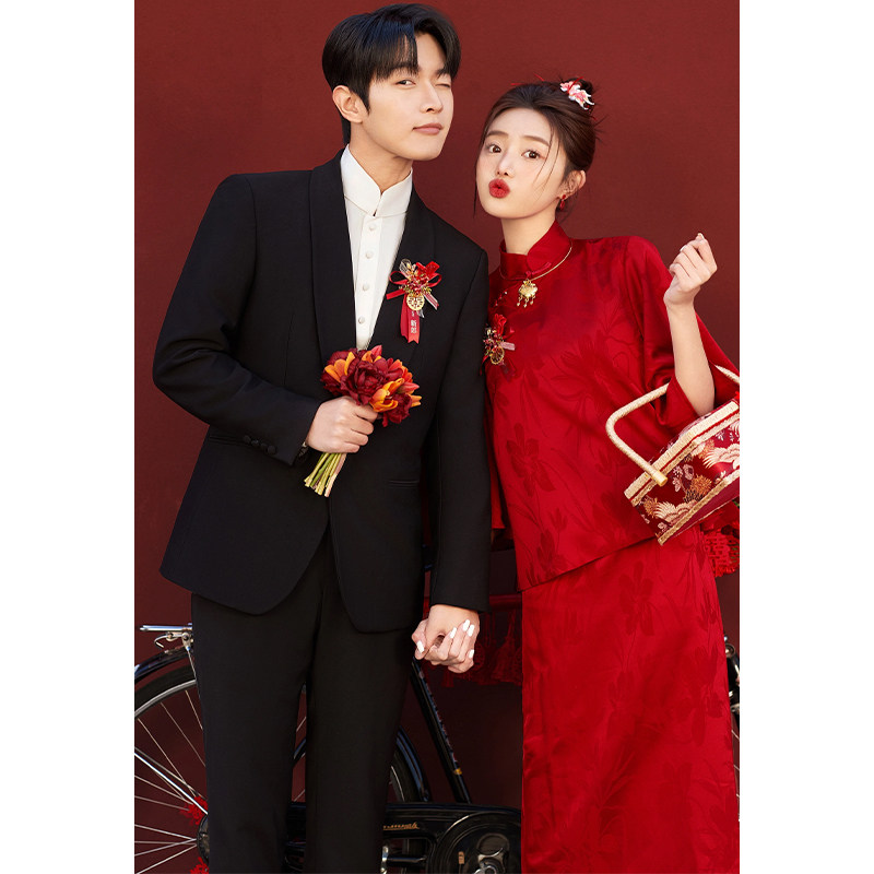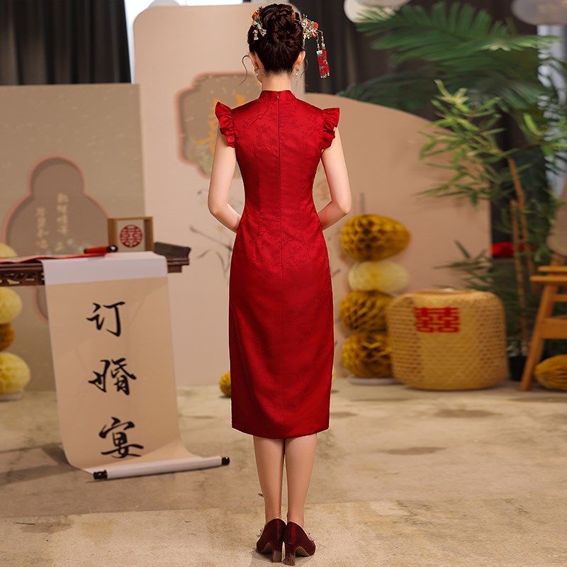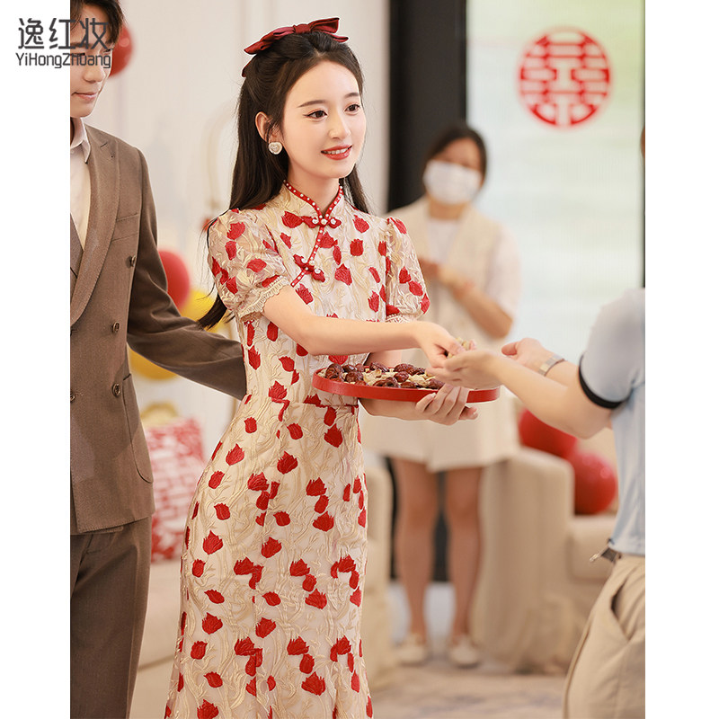 新中式订婚礼服红色旗袍裙外套周岁宴会敬酒平时穿回门服新娘便服