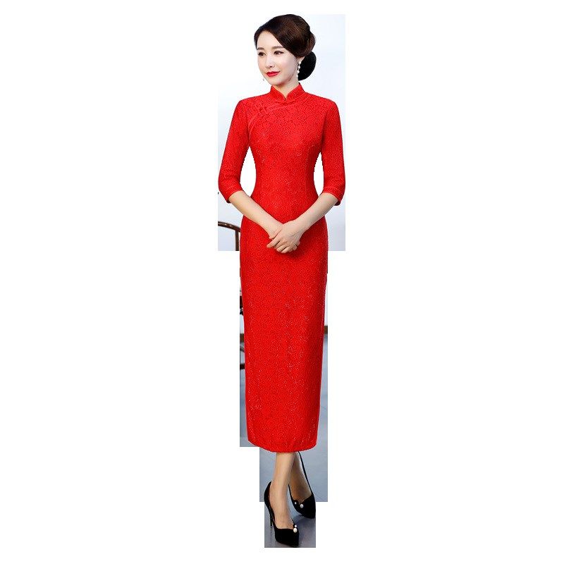 新中式红色旗袍新娘敬酒服冬季加绒加厚长袖订婚礼服回门装11/24