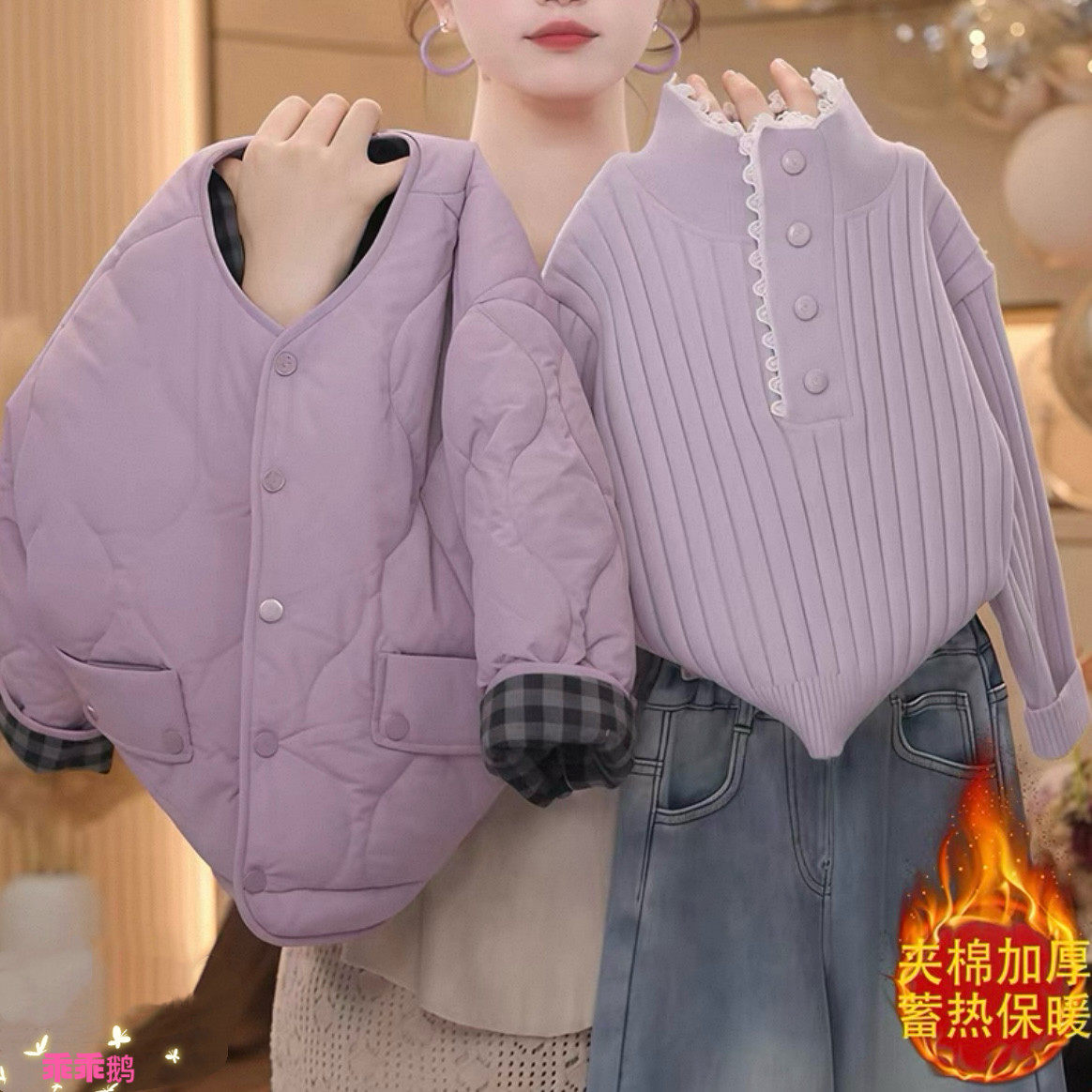 欧洲站女童秋冬套装2025新款儿童洋气女宝冬季夹棉外套毛衣牛仔裤
