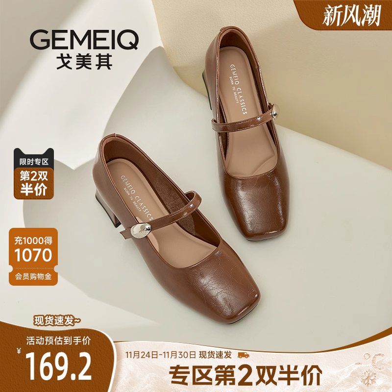 戈美其商场同款粗跟单鞋女中跟2025新款通勤百搭配裙子玛丽珍女鞋