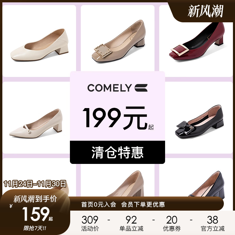 康莉comely浅口尖头粗跟单鞋女方头通勤中跟鞋 159元起不定时更新