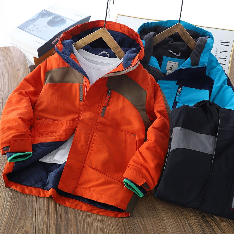 4折~男童加厚连帽外套儿童加绒中长款中大童夹棉衣防风衣冲锋衣