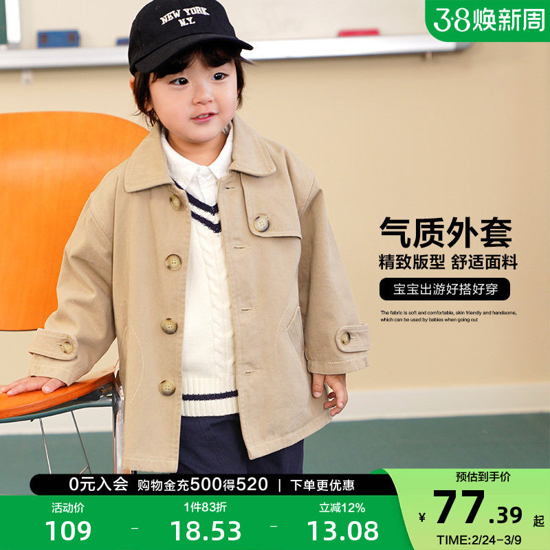 多多家男童风衣春秋2026新款经典卡其色儿童外套中长款学院风春装