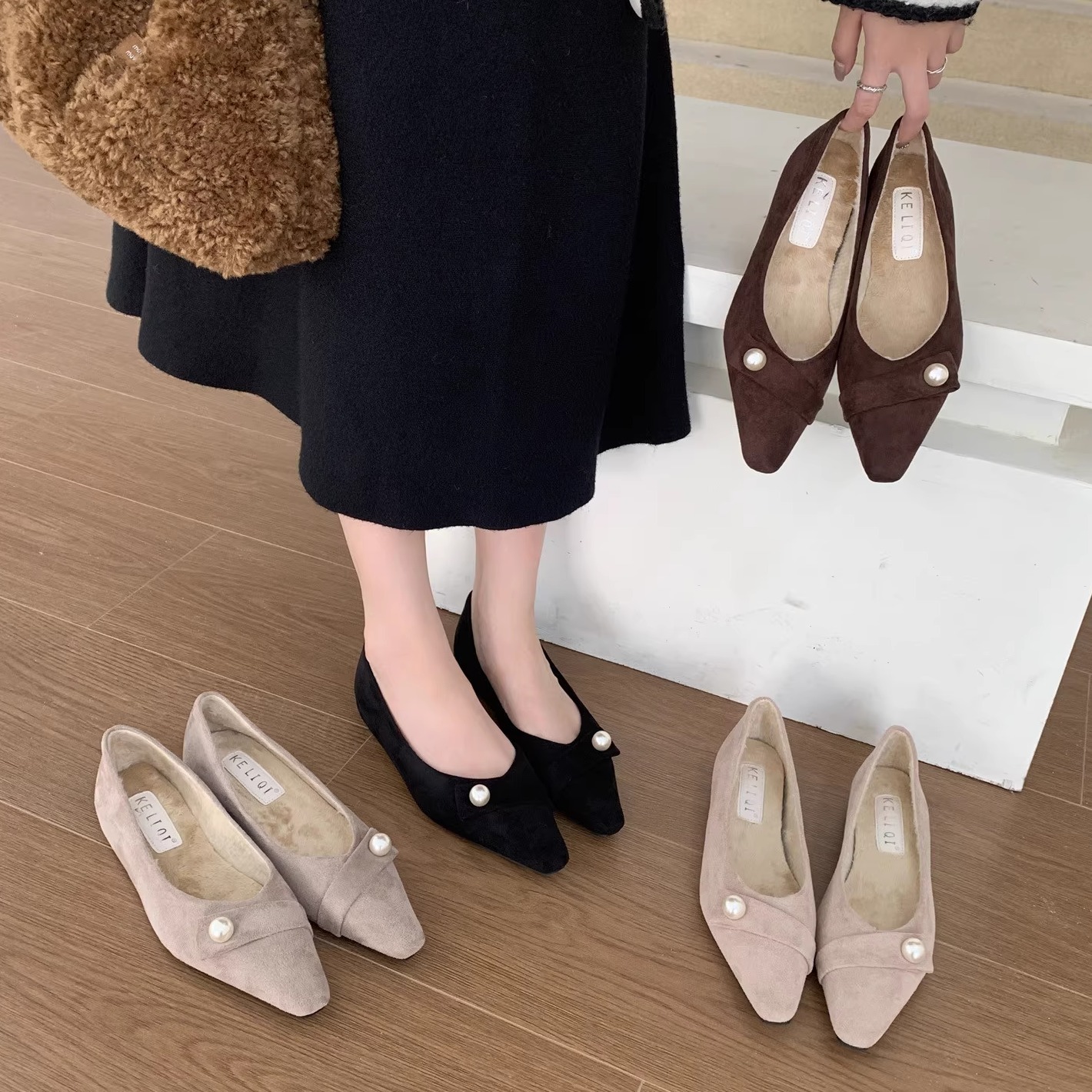 法式小众设计感绒面单鞋女鞋子2025春秋新款坡跟气质尖头浅口瓢鞋