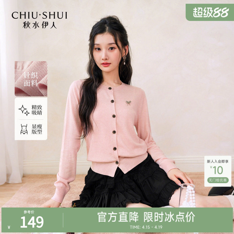 FIVE PLUS温柔系蝴蝶结通勤约会圆领短款针织开衫2026新款女春装