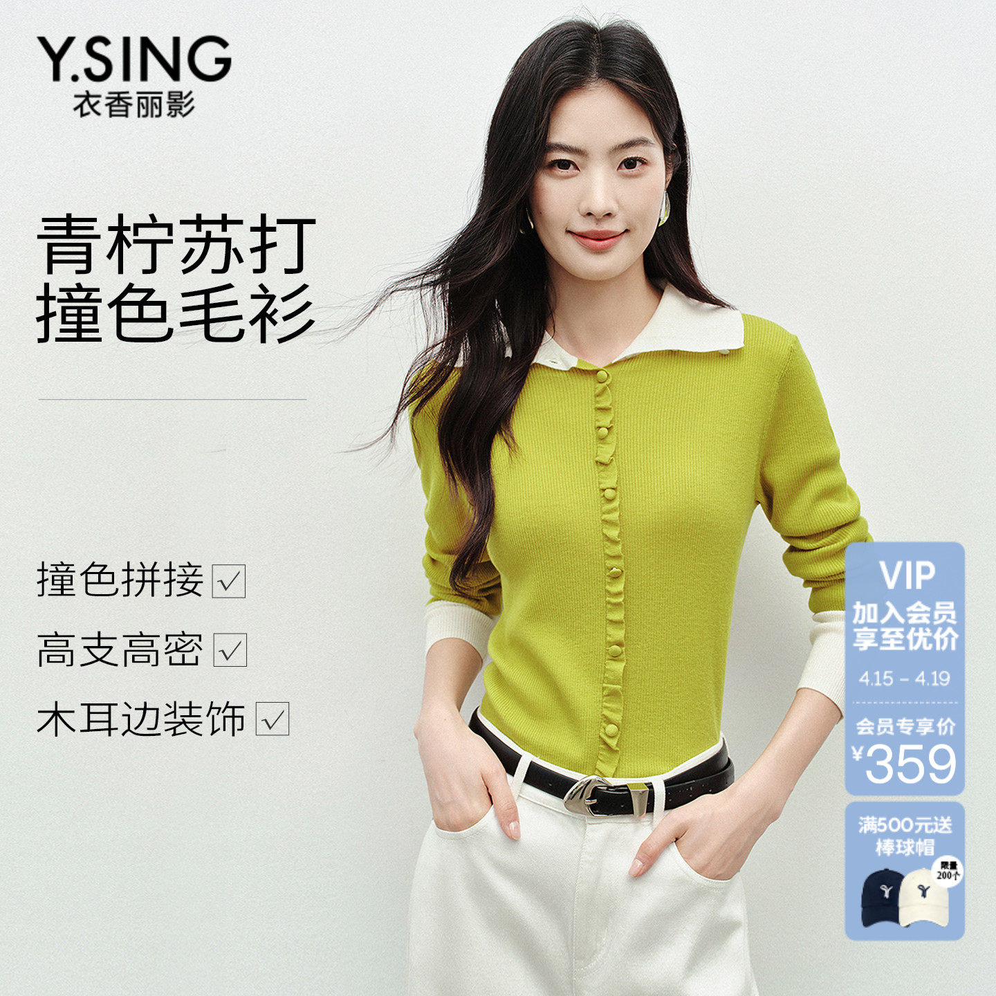 衣香丽影撞色针织开衫女短款2026春装新款小个子气质正肩减龄上衣