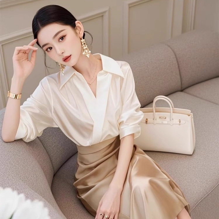 春装搭配一整套轻熟气质女神范高端小香风衬衫香槟色半身裙套装夏