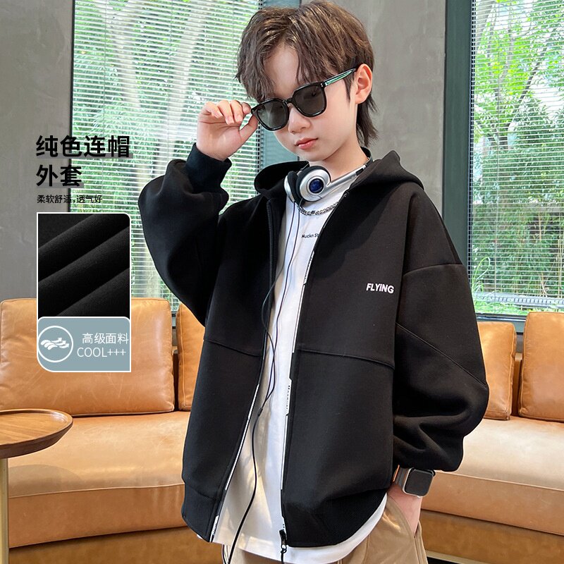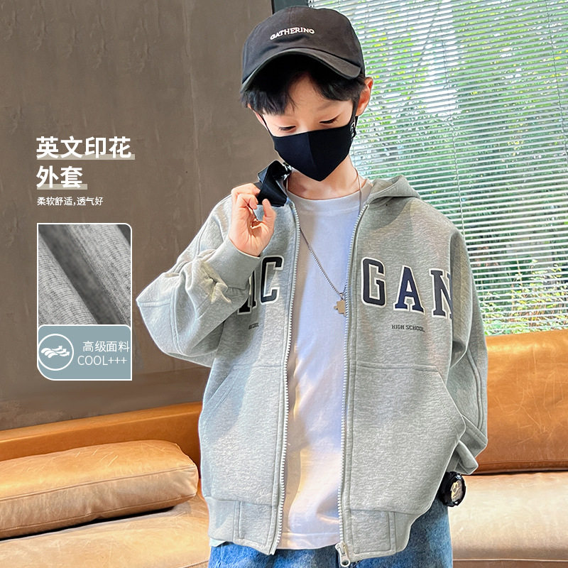 男童春装字母连帽外套2025春季新款中大童韩版百搭宽松休闲拉链衫