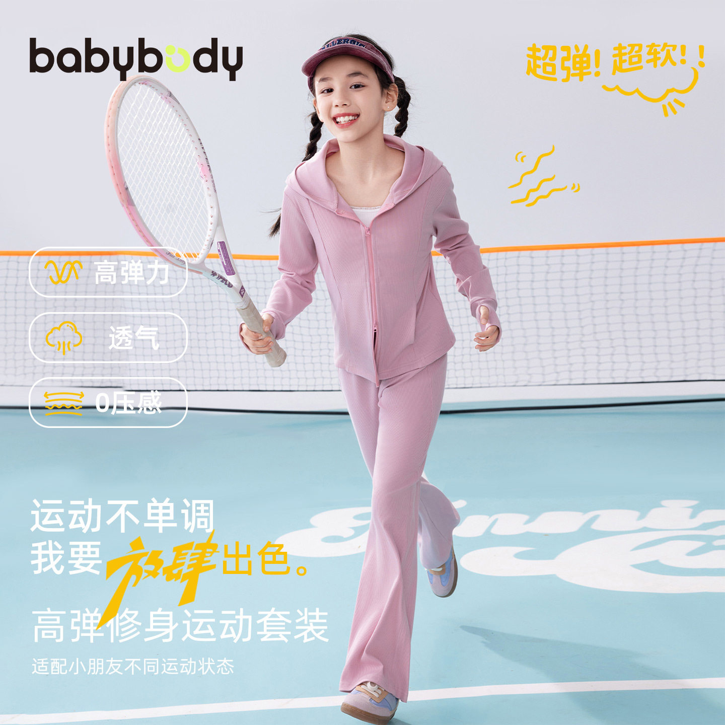 babybody童装女童套装2026春季新款女大童外套裤子运动服纯色春装