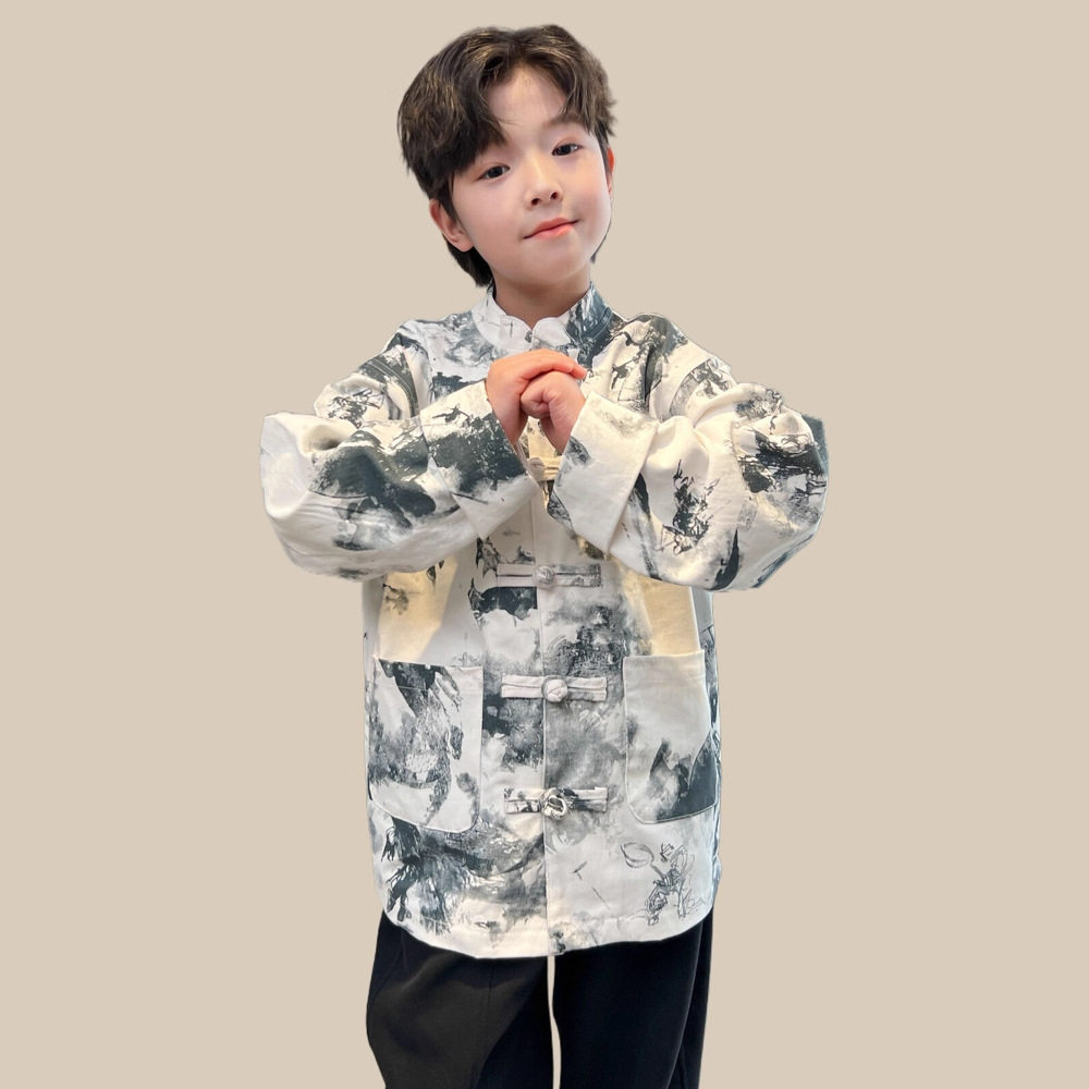 新品款2026新款儿童春装汉服中大童中国风唐装潮男童炸街痞帅外套