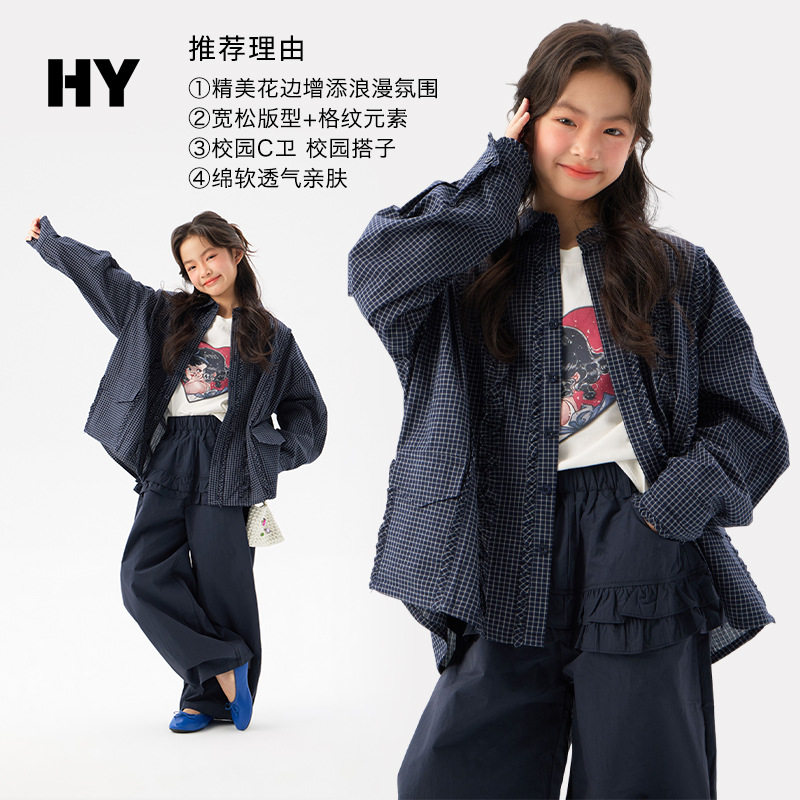 童装儿童衬衫春秋款2026新款女童春装上衣女孩中大童外套裤子套装