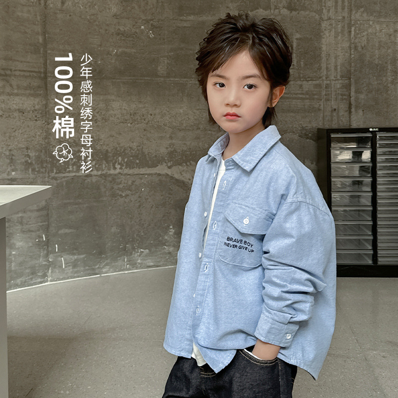 5B男孩女童牛仔外套春装刺绣牛仔夹克学生薄衬衣上衣120-160