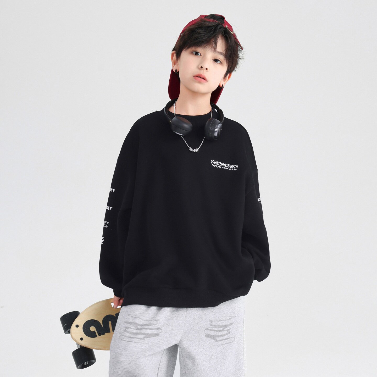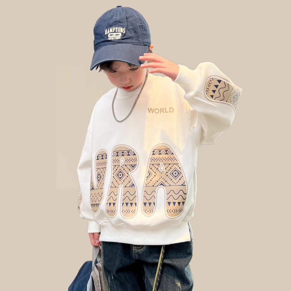 男童春装耳机卫衣2025中大童韩版宽松百搭休闲印花上衣潮潮流印花