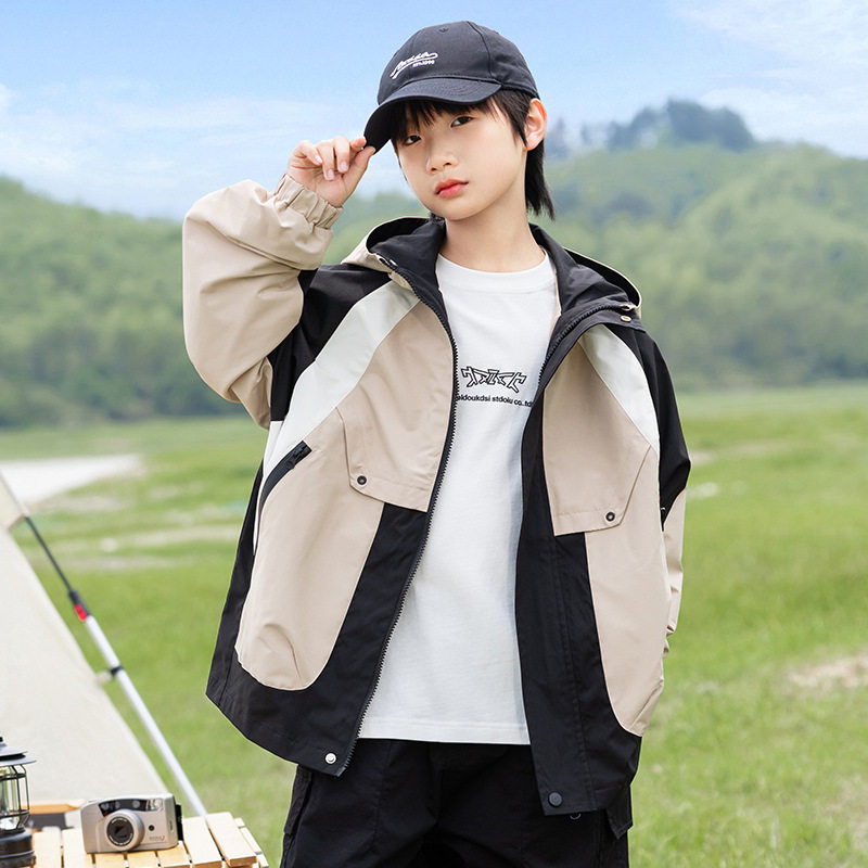 男童外套春装2025新款连帽儿童户外夹克中大童装春秋季薄款上衣潮
