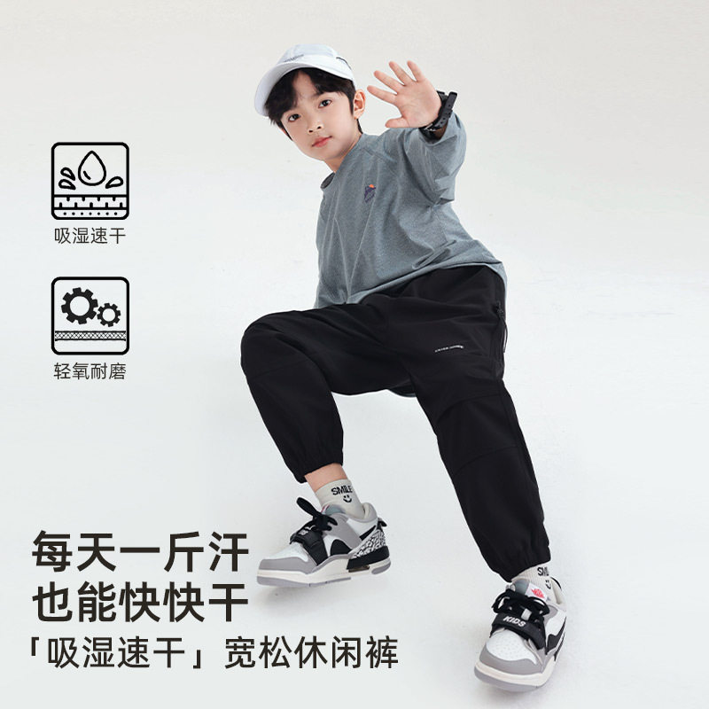 男大童春装户外卡其色伞兵工装裤2026新款儿童装男孩直筒阔腿裤子