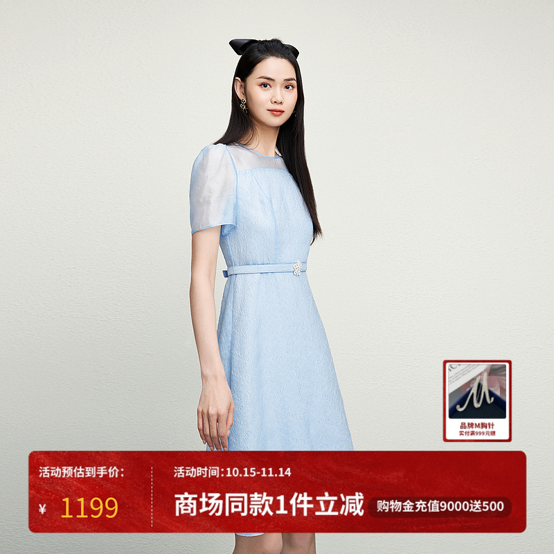 声雨竹专柜同款夏秋季新款连衣裙 甜美修身薄款短袖中长裙A字裙女
