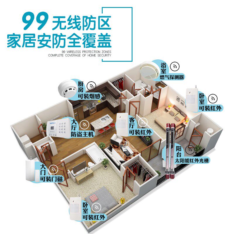 99防区语音电话家庭店铺防盗报警器红外线无线家用防盗器报警器
