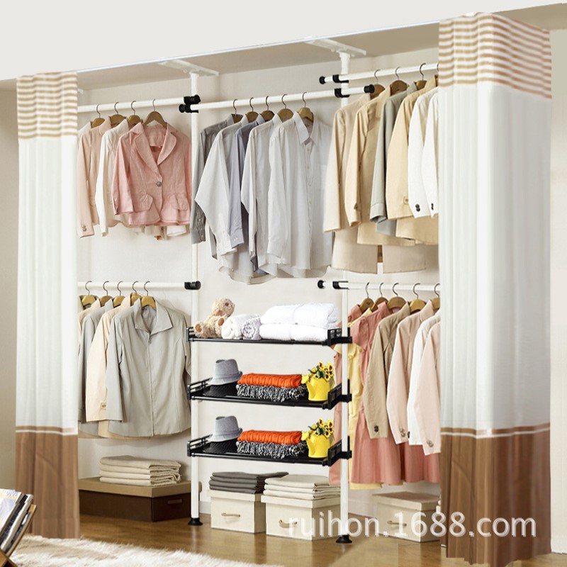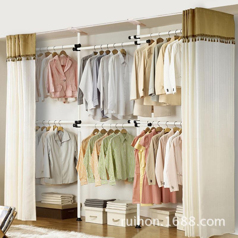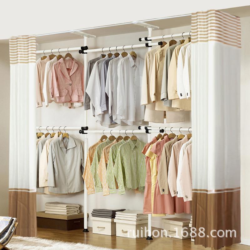 简易不锈钢管布艺衣柜螺丝组装加粗加固双人单人衣橱家用挂衣柜架