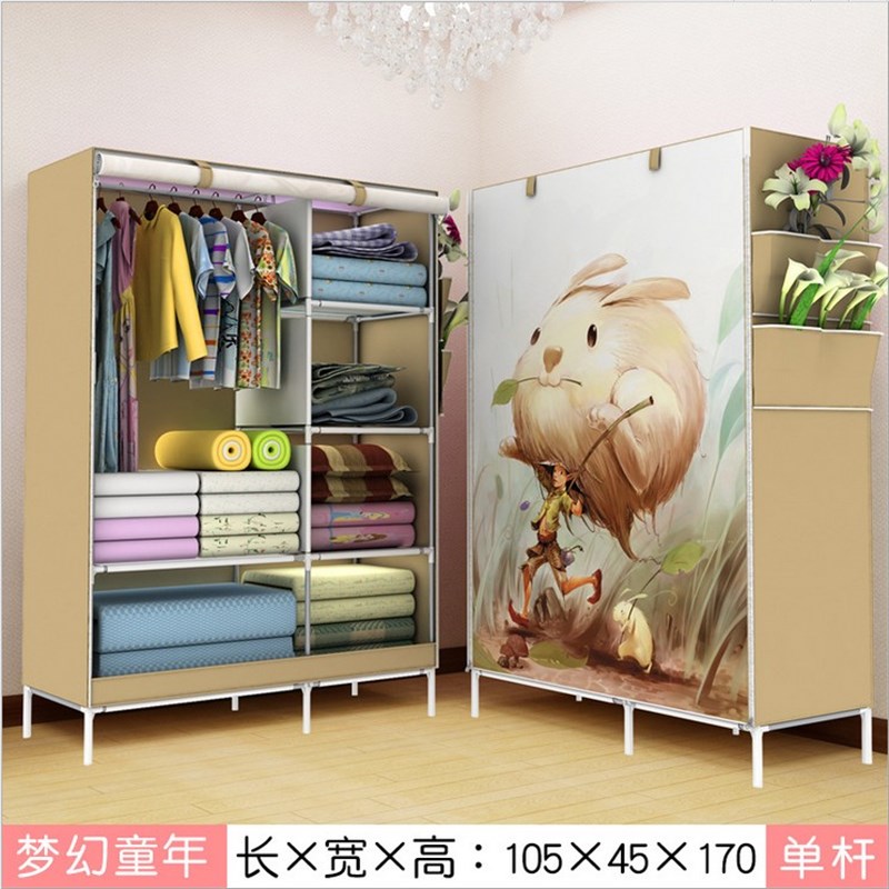 布衣柜简易布艺实木组装单人双人儿童大小组合折叠出租屋宿舍塑料