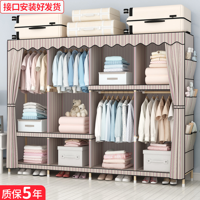 布衣柜钢管加粗加固组装双人简易钢架布艺收纳衣柜经济型衣橱现代