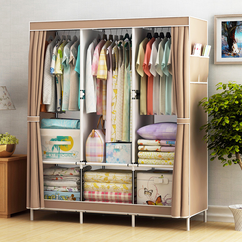 布衣柜钢管加粗加固加厚组装双人简易钢架布艺收纳衣柜经济型衣橱
