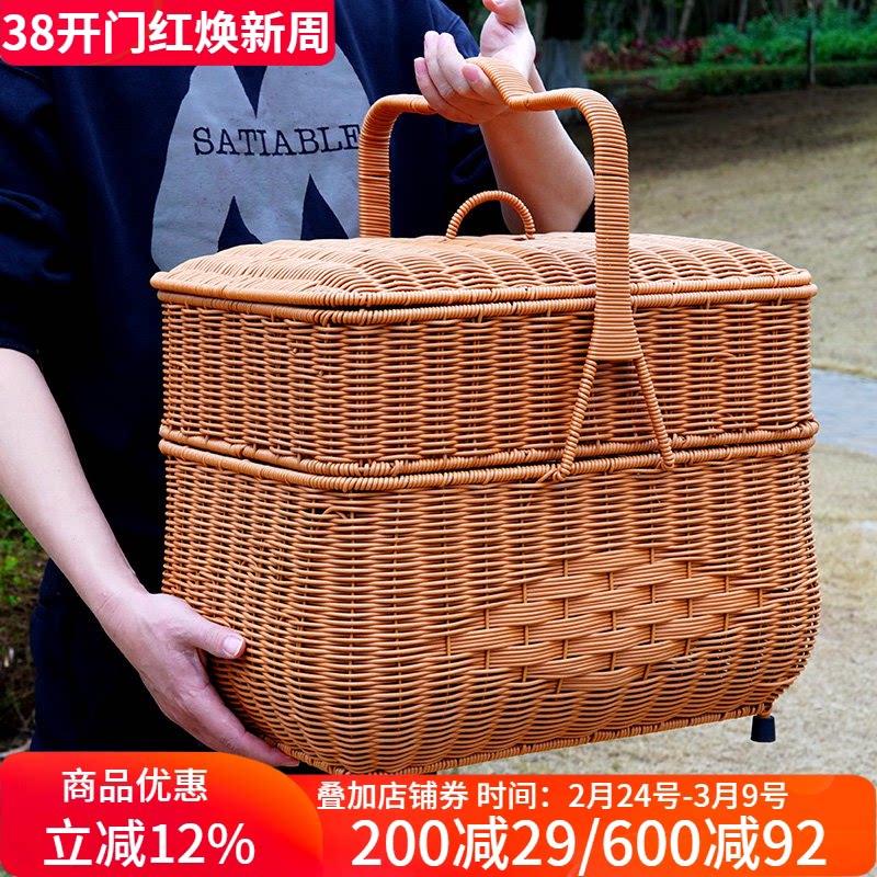 野餐篮子ins户外春游仿藤编大号手提篮买菜购物篮网红田园采摘篮