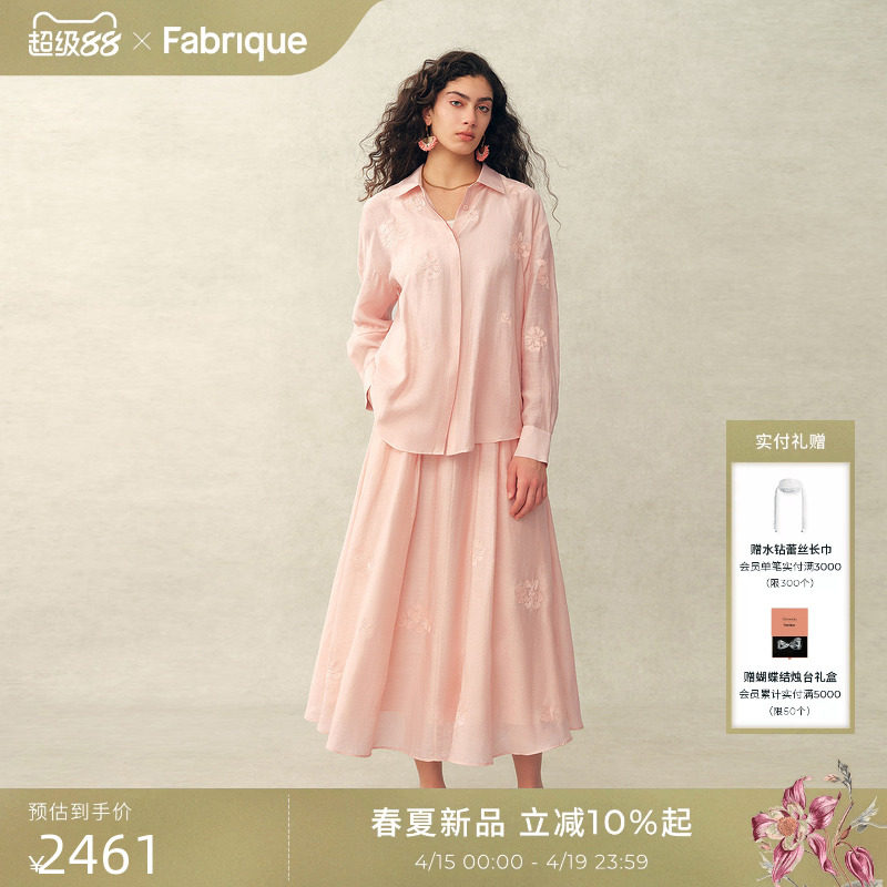Fabrique芭蕾粉微透刺绣宽松衬衫伞型粉色半裙套装2026年夏季新品