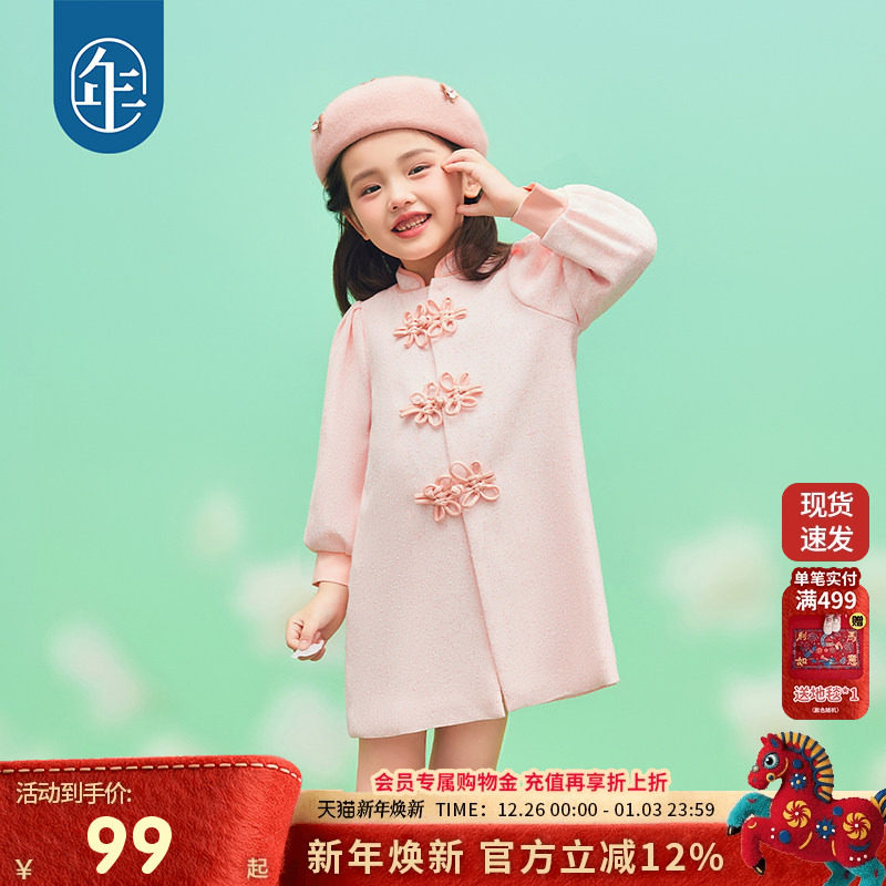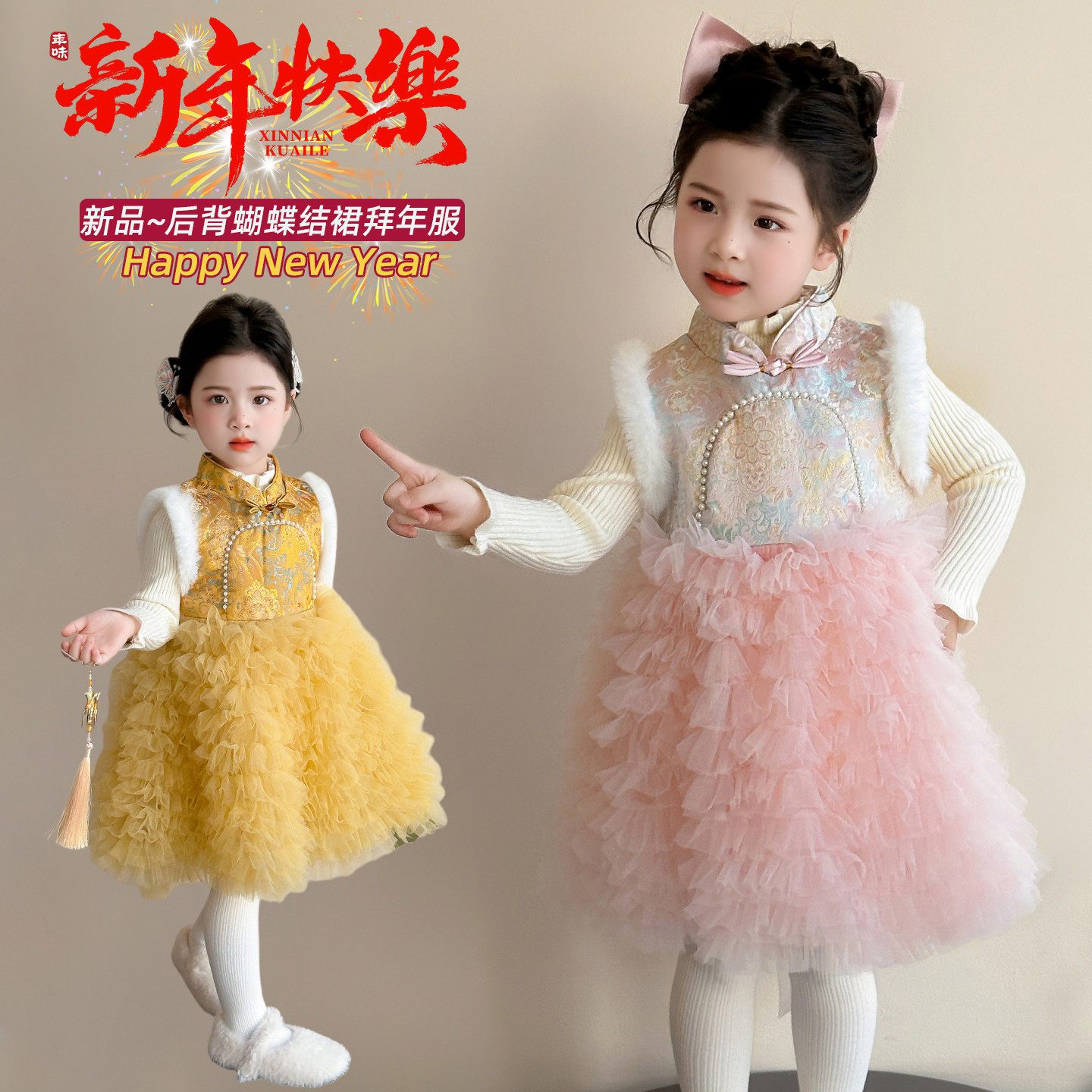 女童旗袍裙拜年服秋冬加绒连衣裙儿童新中式国风唐装女孩公主裙子
