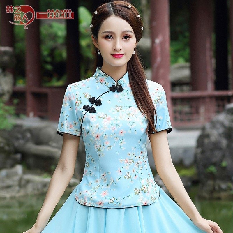 春装新款旗袍上衣复古改良少女中式民国风修身唐装女汉服茶服套装