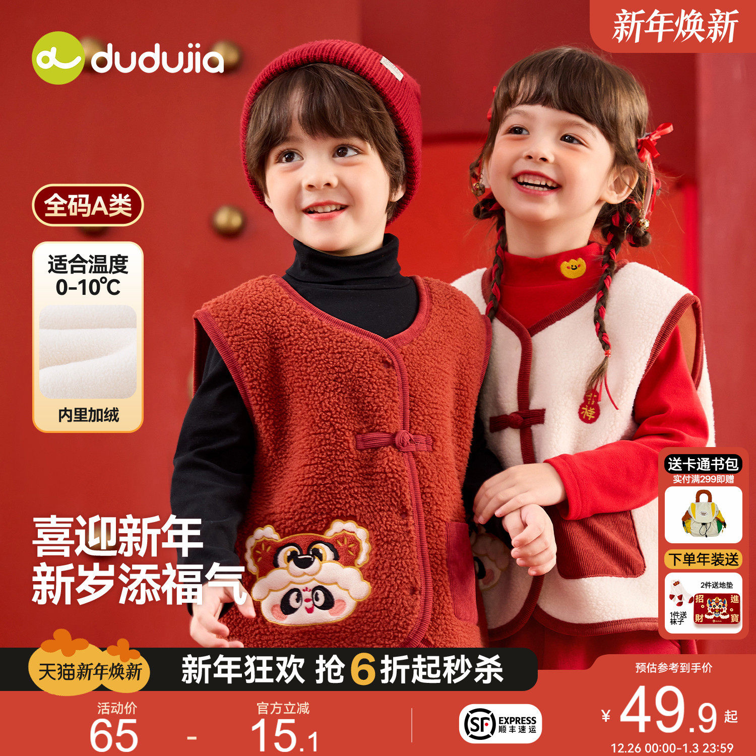 嘟嘟家儿童马甲男童拜年服新中式唐装女童喜庆坎肩宝宝周岁礼服冬