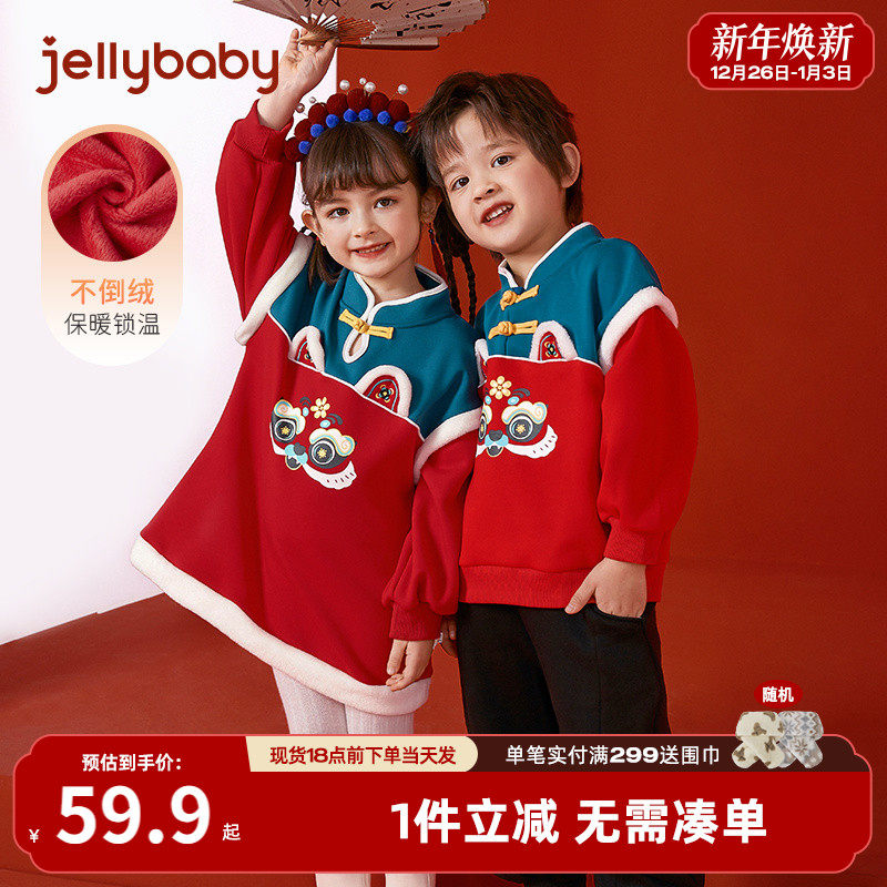宝宝毛衣开衫冬装加厚姐弟装男童过年服唐装女童周岁礼服红色年装