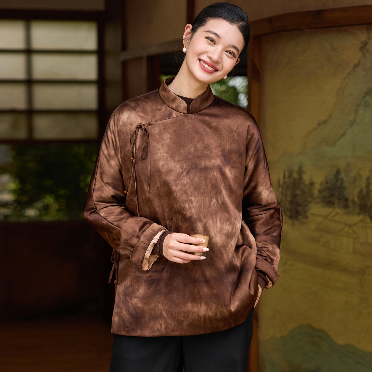 菲伊唐真丝弹力缎冬棉衣女上衣中式文艺复古改良唐装女斜襟外套女