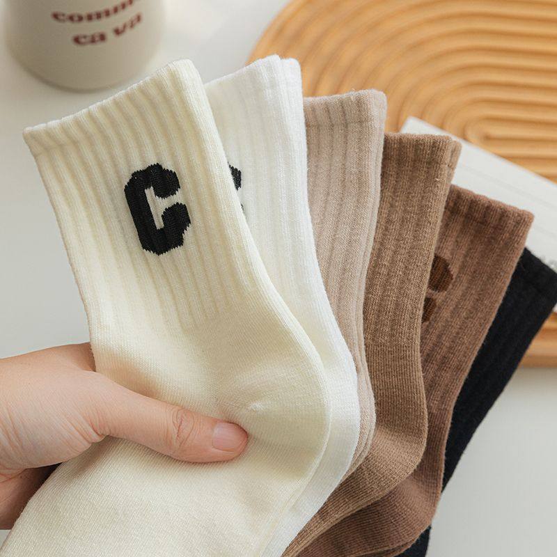 袜子女中筒袜春夏款棉袜ins潮外穿鲨鱼裤袜c字母韩版个性百搭长袜