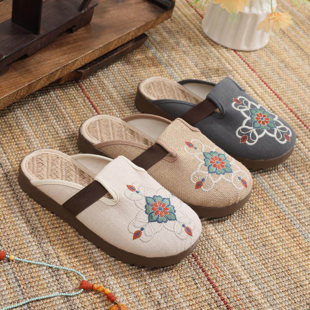 2024年夏季民族风老北京布鞋包头拖鞋透气女鞋亚麻国风半拖汉服鞋