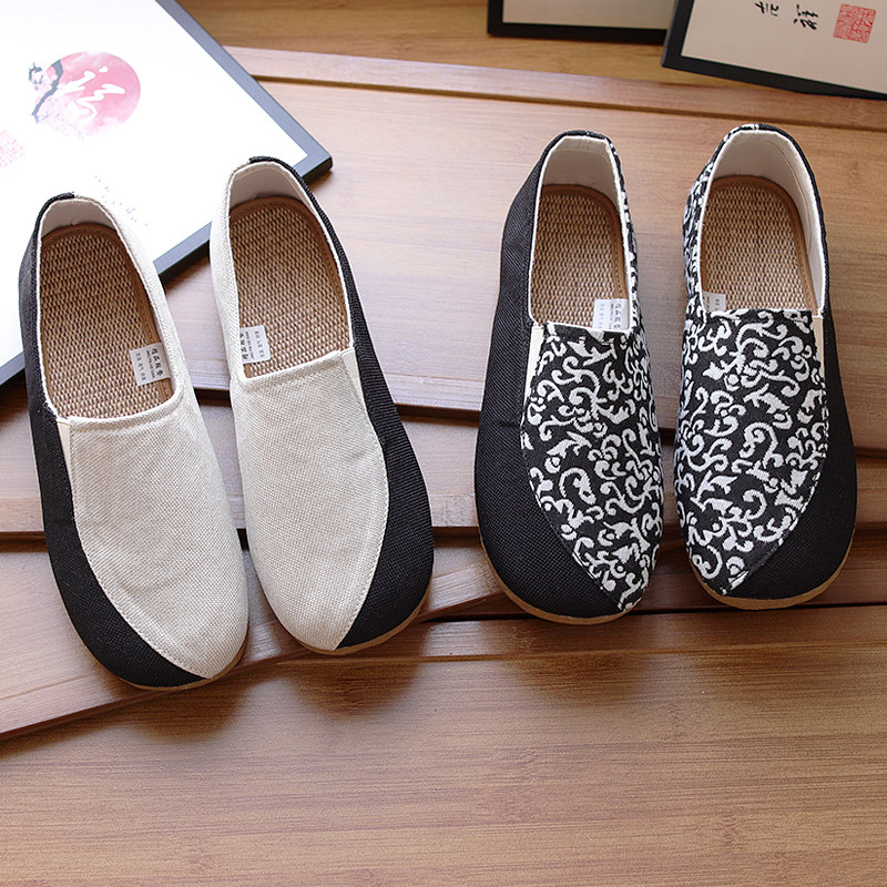 新款民族风懒人渔夫鞋亚麻舒适透气女鞋复古风软底北京布鞋女透气