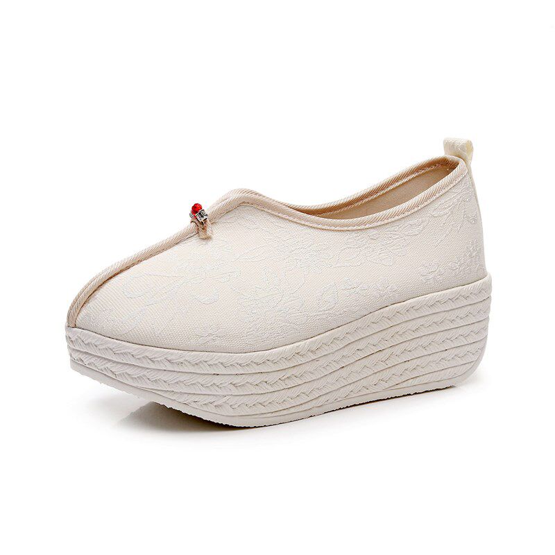 民族风布鞋女鞋2025新款厚底汉服鞋子增高绣花鞋新中式国风松糕底