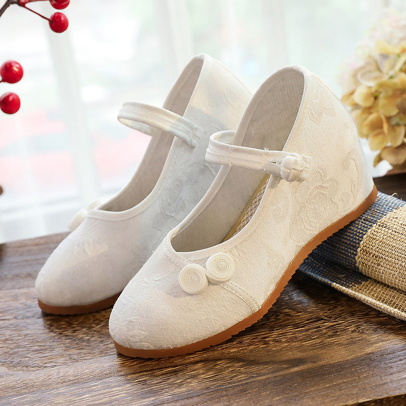 春秋老北京国风坡高跟鞋盘扣提花素色布鞋女汉服舞蹈鞋民族风布鞋