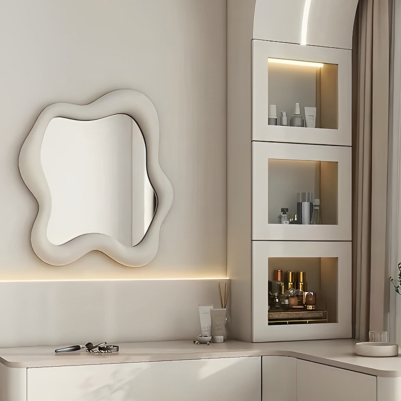 侘寂风花型镜家用壁挂卫生间镜奶油风化妆镜卧室艺术镜玄关餐厅镜