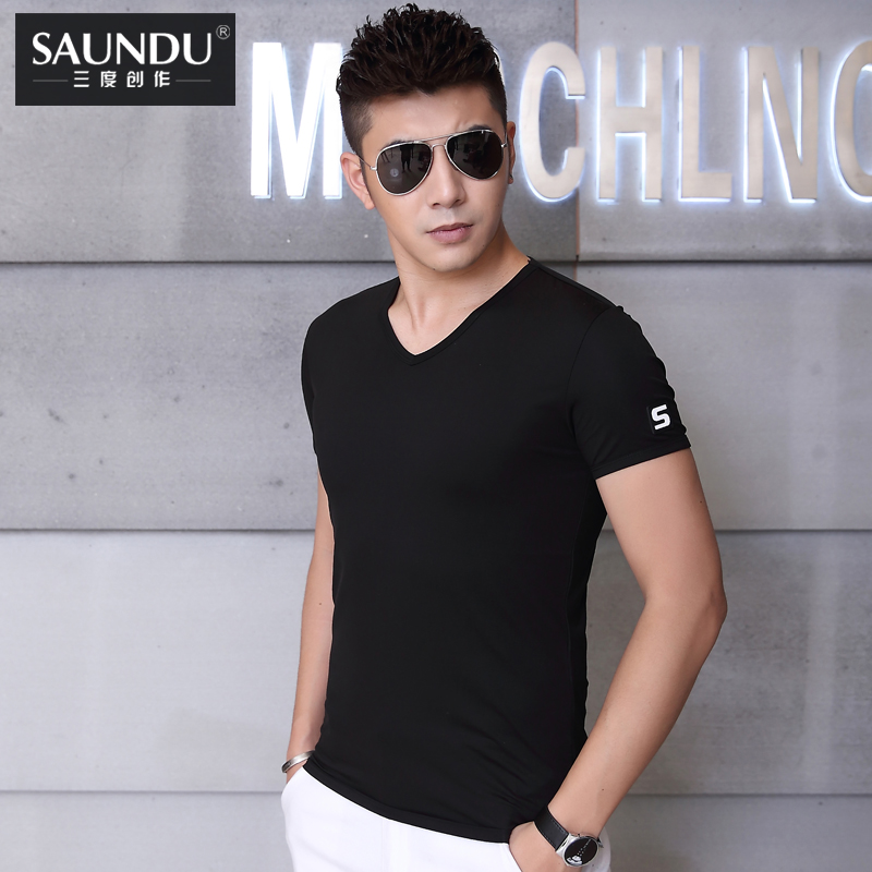 夏装男士紧身t恤韩版修身V字领短袖大码半袖低领末代尔英伦风体恤