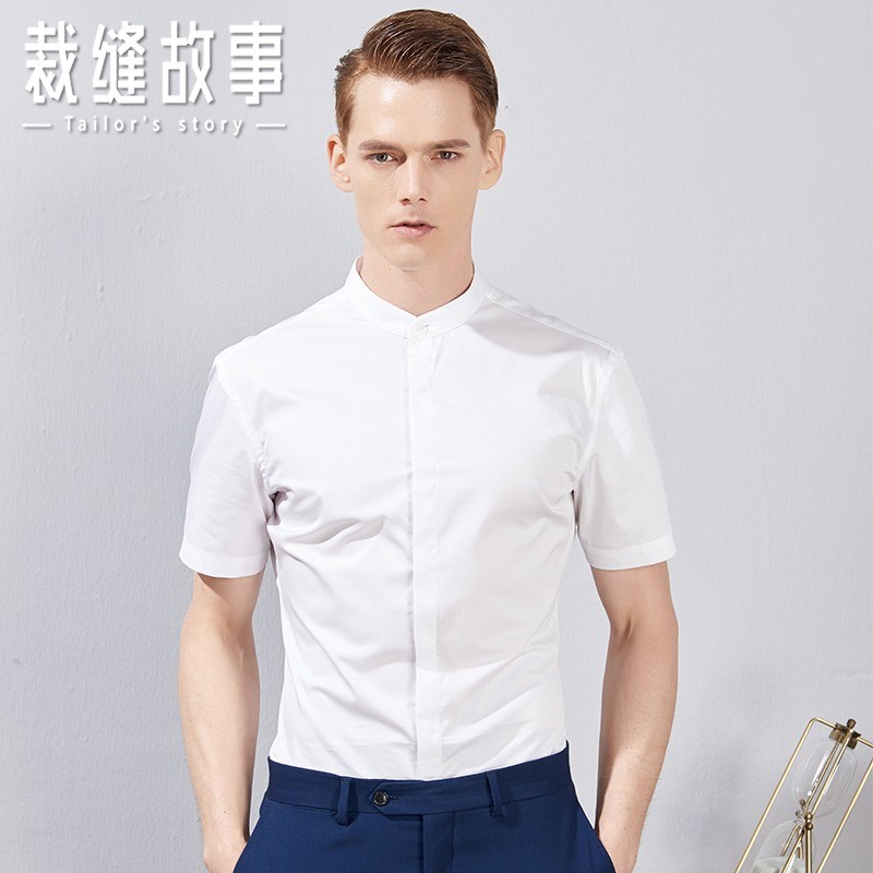 2025夏装白衬衫男短袖免烫商务职业装修身正装立领白色衬衣暗门襟