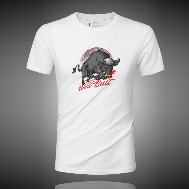 夏装圆领上衣男士短袖t恤潮流纯棉修身印花休闲半截袖简约体恤衫