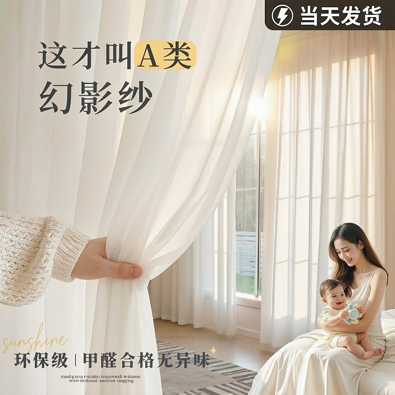 幻影纱窗帘透光不透人2025新款白纱客厅阳台卧室隔热纱帘防刮耐磨