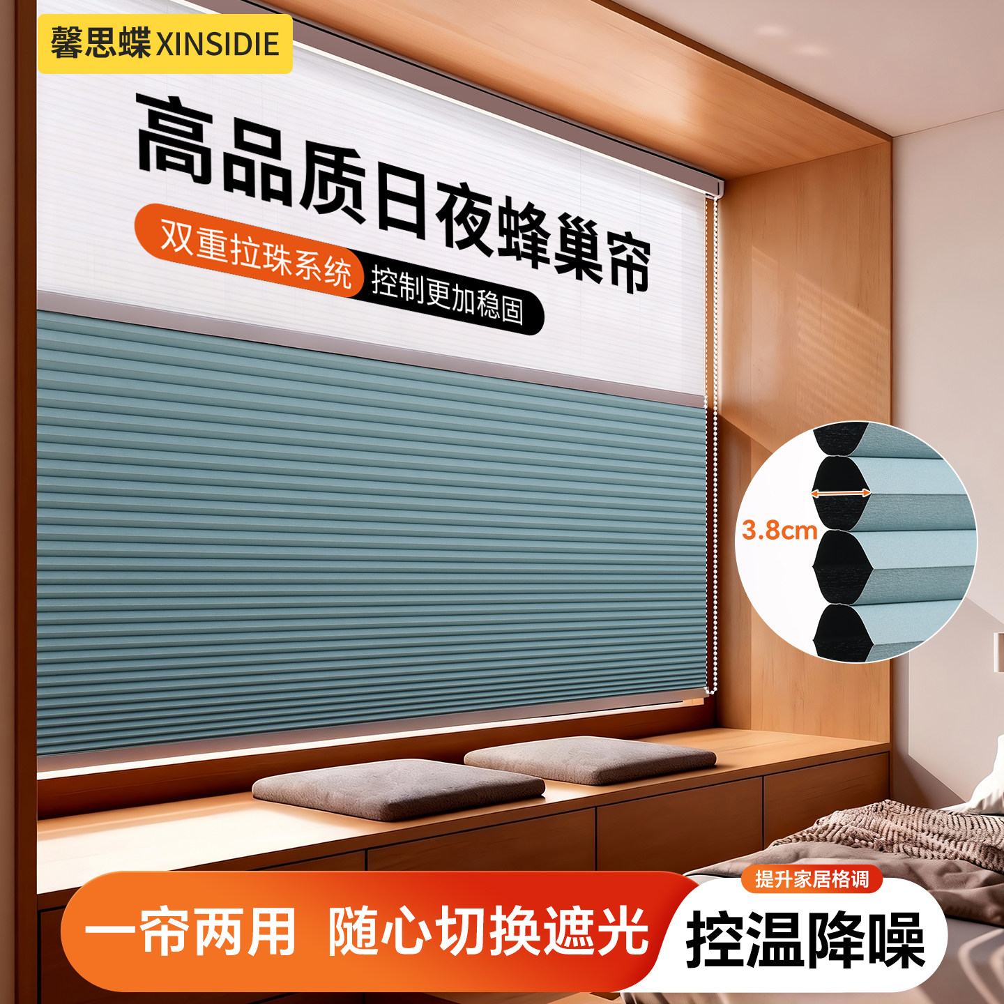 推拉式免打孔内嵌日夜蜂巢帘蜂窝帘风琴窗帘阳台遮光隔热防风窗户