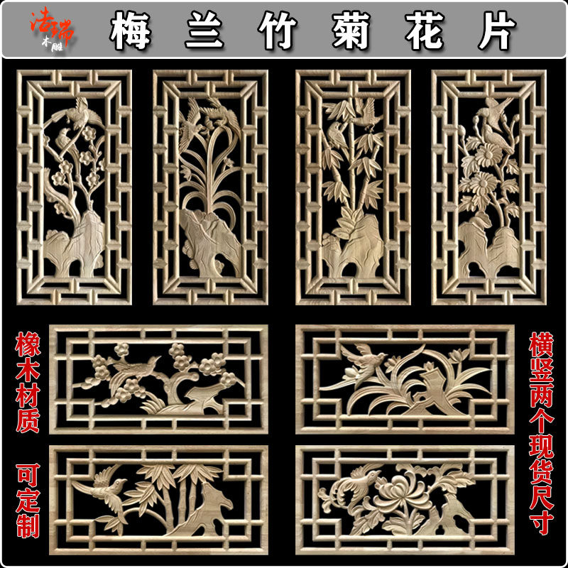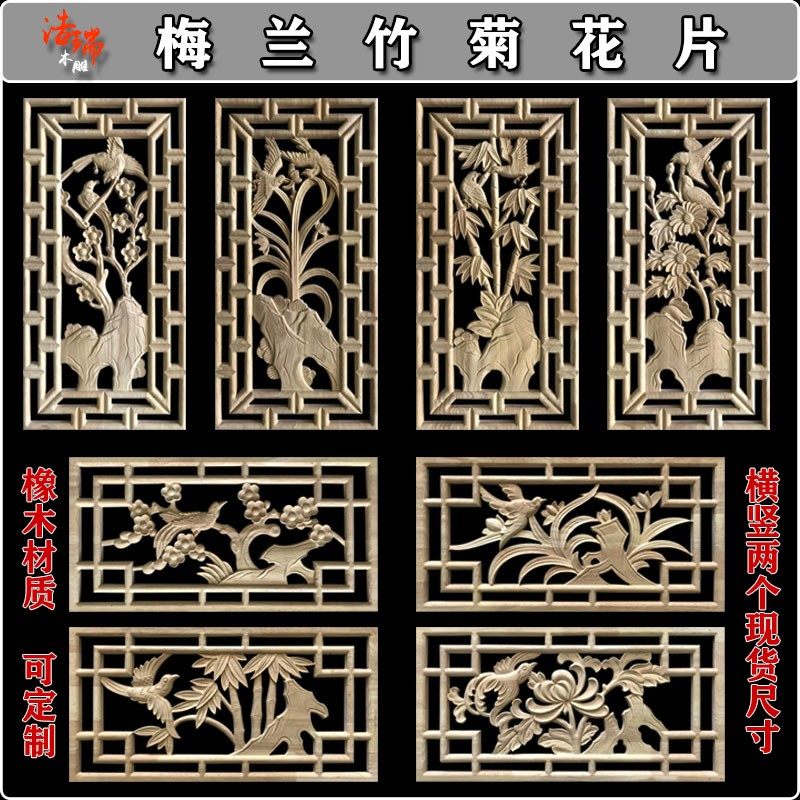 东阳木雕中式装饰四季花梅兰竹菊木雕贴花实木花片花瓶贴花精雕花