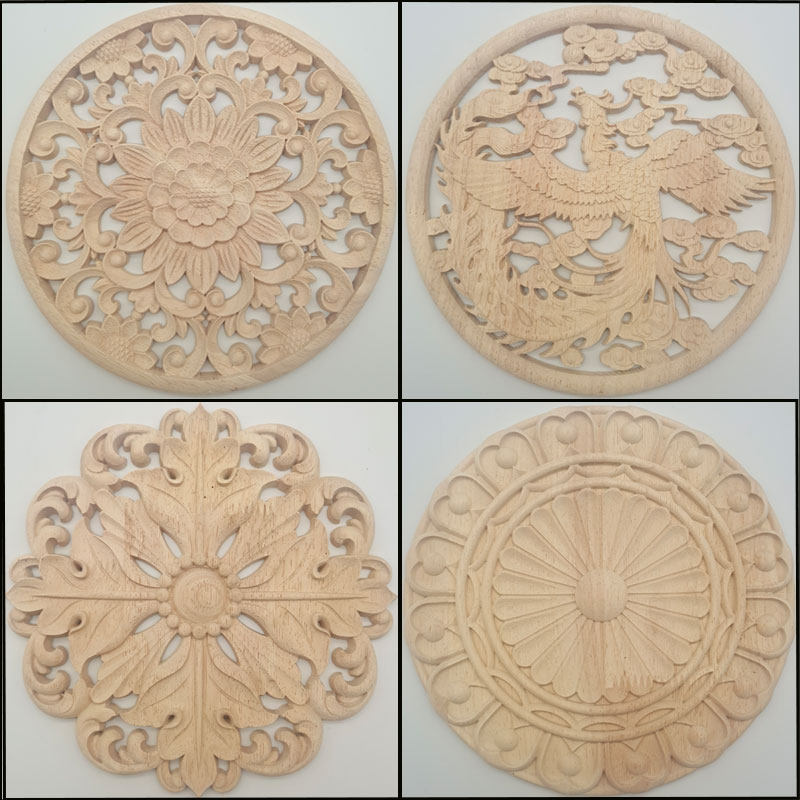 欧式东阳木雕贴花实木花片圆形盘家具橱柜门心装饰雕花墙壁工艺品