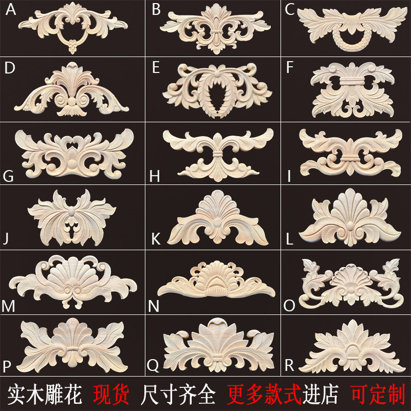 东阳木雕欧式实木木雕贴花背景墙木门室内装饰花家具柜门雕花贴片