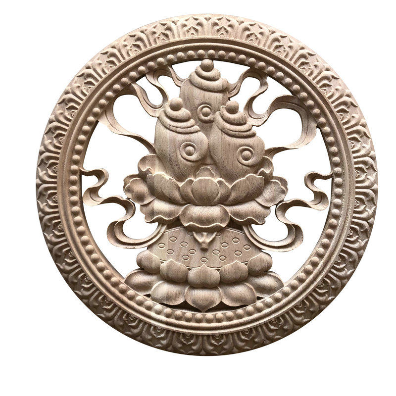 东阳木雕圆形圆花门花实木贴花中欧式木制背景墙装饰家居装修精品