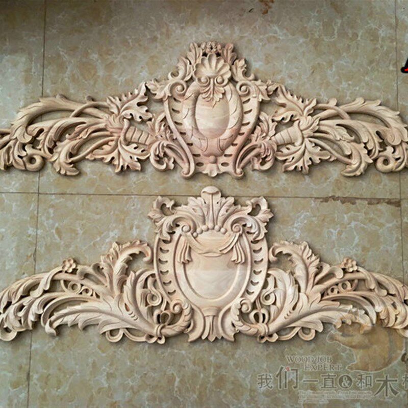 欧式木雕贴花实木雕刻木花片橱柜柜门门头装饰花长条形 东阳木雕