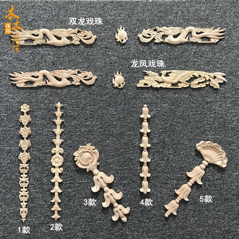 东阳木雕贴花欧式实木长形花片家居装修家具装饰木花精雕刻花贴片