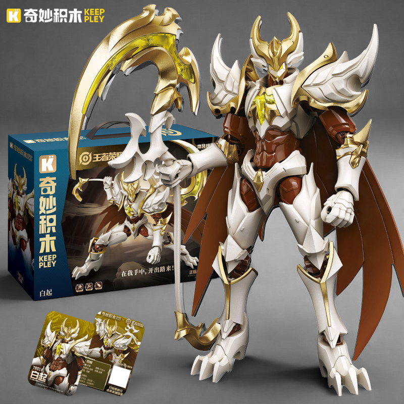 启蒙奇妙积木王者荣耀杀神白起白色死神骑士手办拼装机甲模型礼物